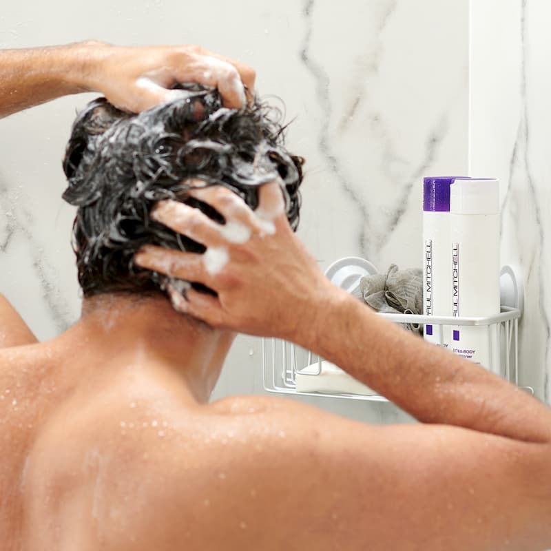 Heavy products cause buildup and can leave residue in your hair. Try a leave-in conditioner, like Men’s Solutions Leave-In Conditioner to keep frizz to a minimum and then apply a light mousse for a little bit of hold, like Paul Mitchell Sculpting Foam.