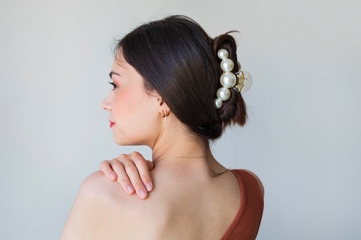 The claw clip is a timeless accessory that combines practicality with style, making it an easy way to elevate any look. Its versatility allows for everything from a casual half-up style to a polished French twist, perfect for transitioning from the office to after-work plans. For a simple approach, twist hair upward from the nape of your neck and fold it against the head. Secure the twist by clamping the claw clip over it, secure any loose strands with a bobby pin, and the style is ready to go. For even more hair accessories to simplify your office look, check out our blog to see what's trending.